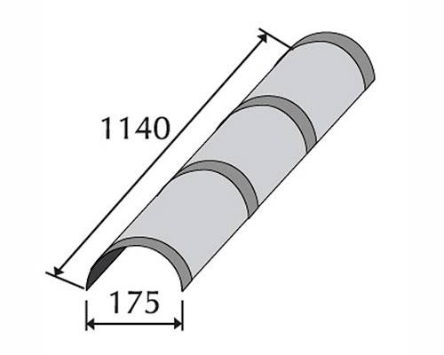 Конек Метротайл (Metrotile) полукруглый тройной, цвет серый, 1140х173 мм