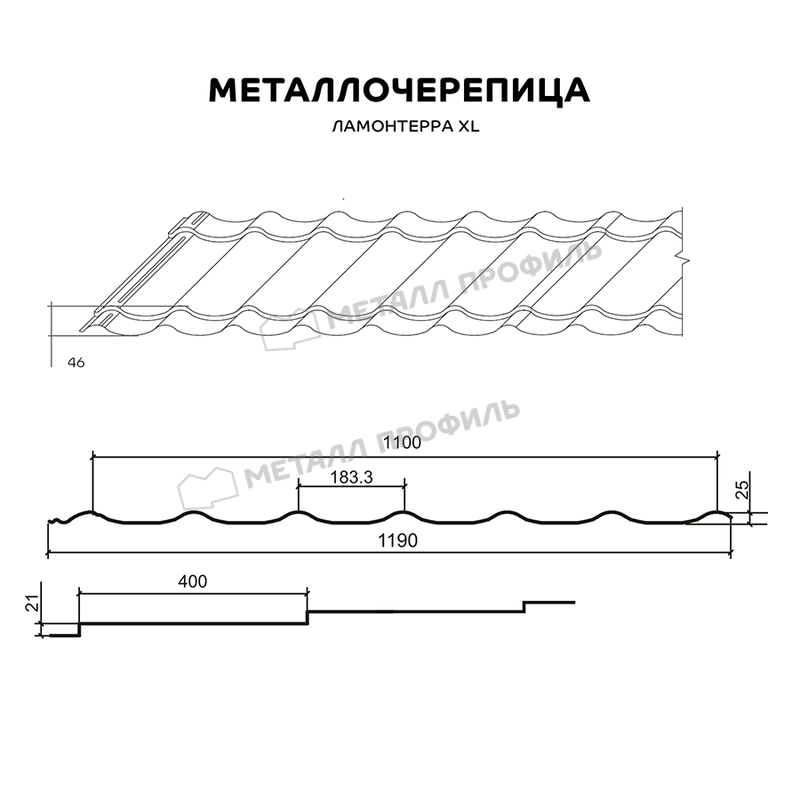 Металлочерепица Металл-Профиль Ламонтерра XL 0,5 NormanMP RAL 7024 Серый графит
