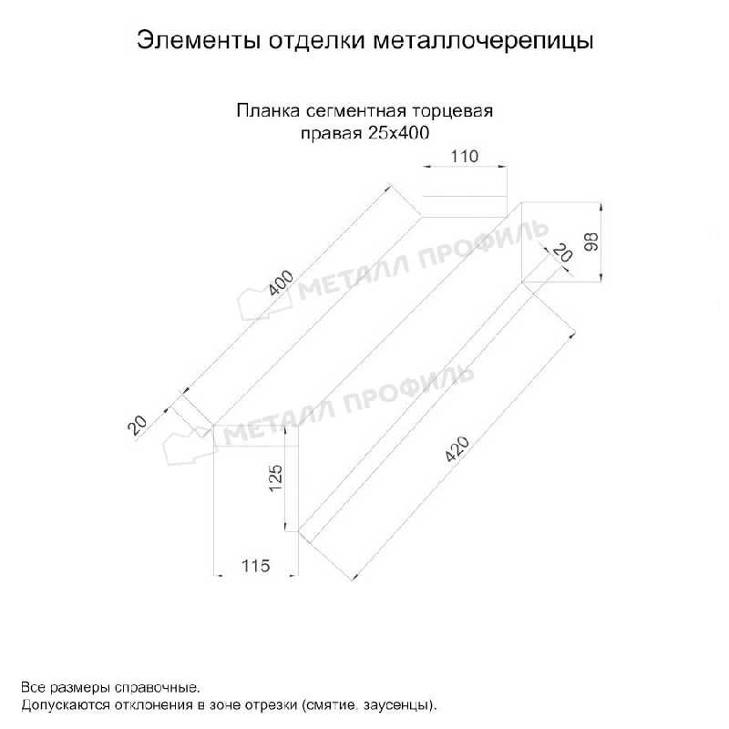 Планка сегментная торцевая правая 400 мм (PURMAN-20-5005-0.5)