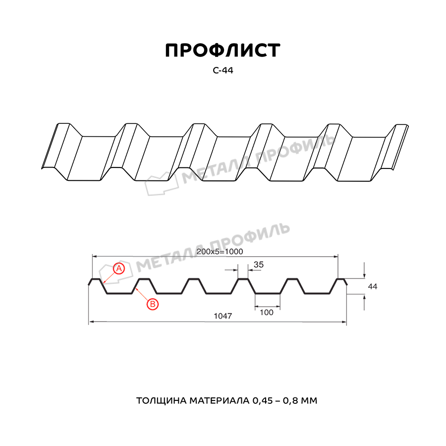 Профиль С-44 обладает высокой прочностью и устойчивостью к воздействию различных погодных условий, что делает его идеальным выбором для наружных работ.